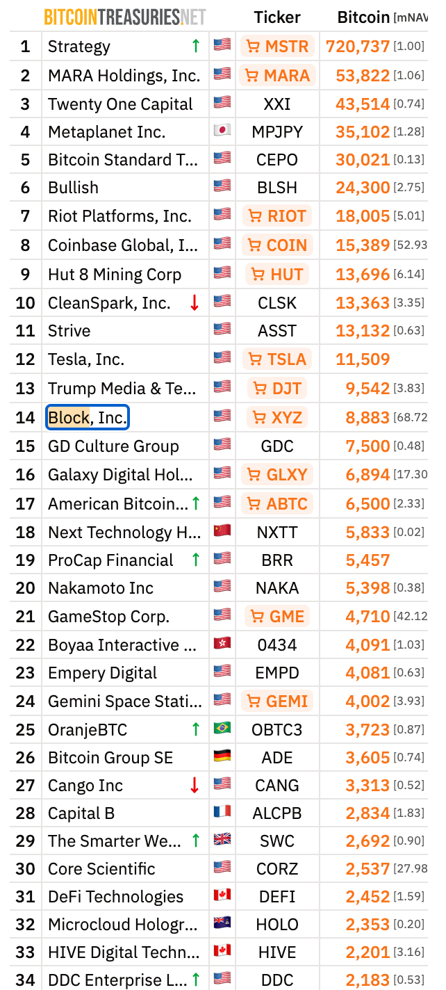 Крупнейшие компании с биткоинами на балансе. Источник: BitcoinTreasuries.