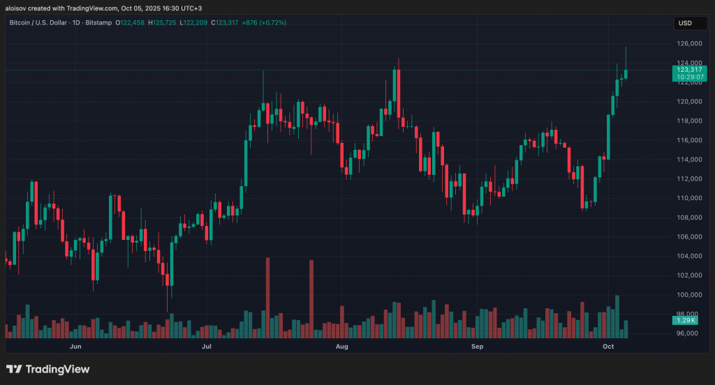 Биткоин обновил исторический максимум выше $125 000, но затем скорректировался более чем на $2 000. Трейдеры теперь гадают, где найдет свое дно цена главной криптовалюты.