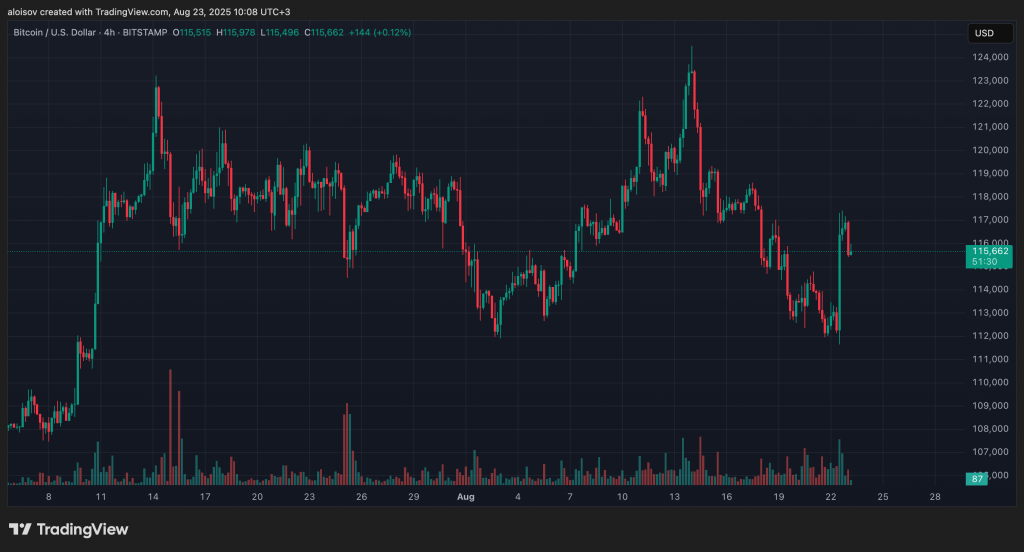 Биткоин взлетел до $117 421 после того, как глава Федеральной резервной системы США Джером Пауэлл (Jerome Powell) указал на возможное снижение процентных ставок в сентябре.