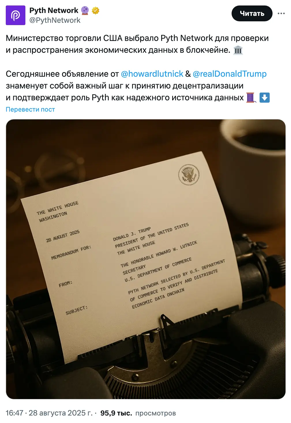 Правительство США привлекло Chainlink и Pyth, двух поставщиков блокчейн-оракулов, для публикации экономических данных в блокчейне. Это решение является частью плана администрации Трампа по повышению подотчетности государственных расходов.