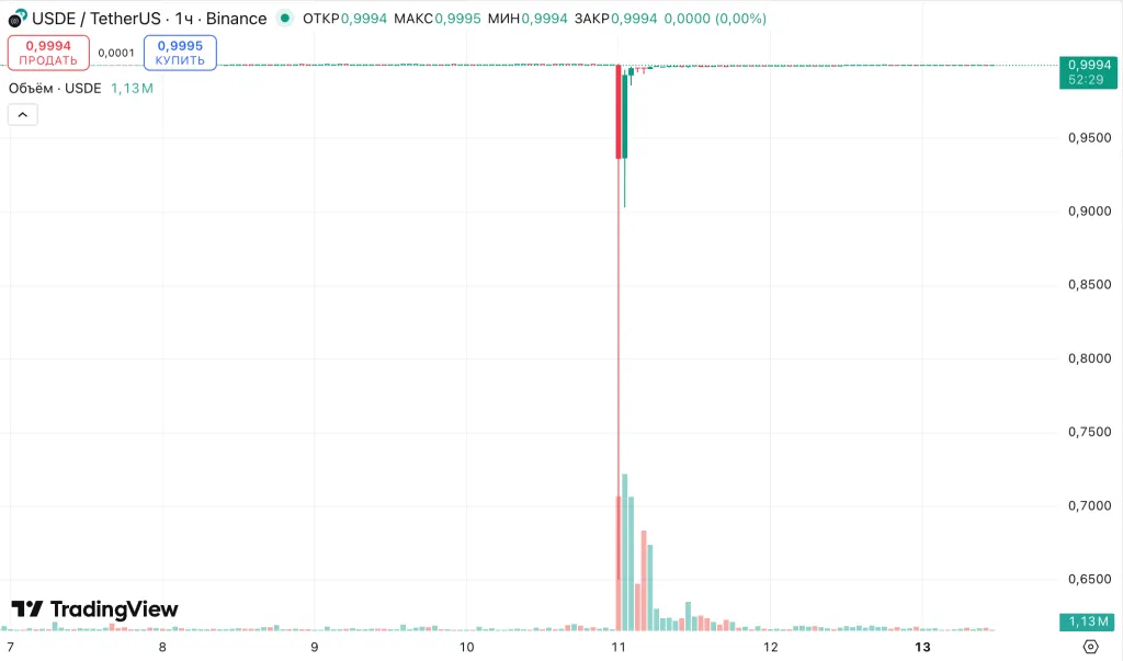 Часовой график USDe/USDT биржи Binance. Источник: TradingView.