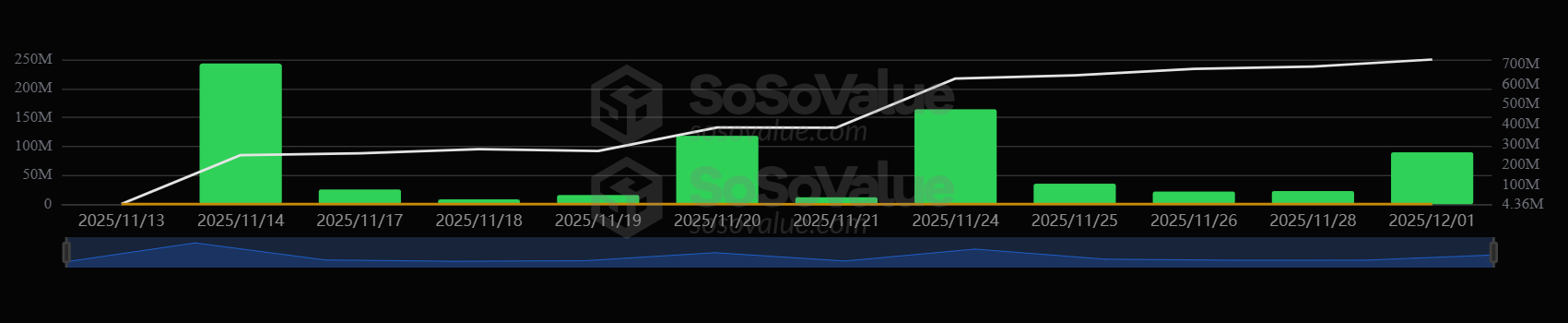 Приток средств в ETF XRP. Источник: SoSoValue