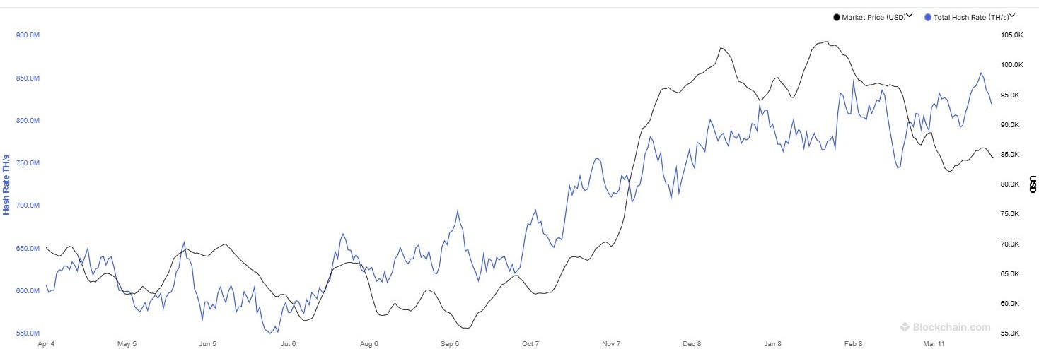 Курс биткоина с середины марта упал на 23%, с пика в $109 000 до диапазона $80 000–85 000. Это только усилило давление на доходы майнеров.