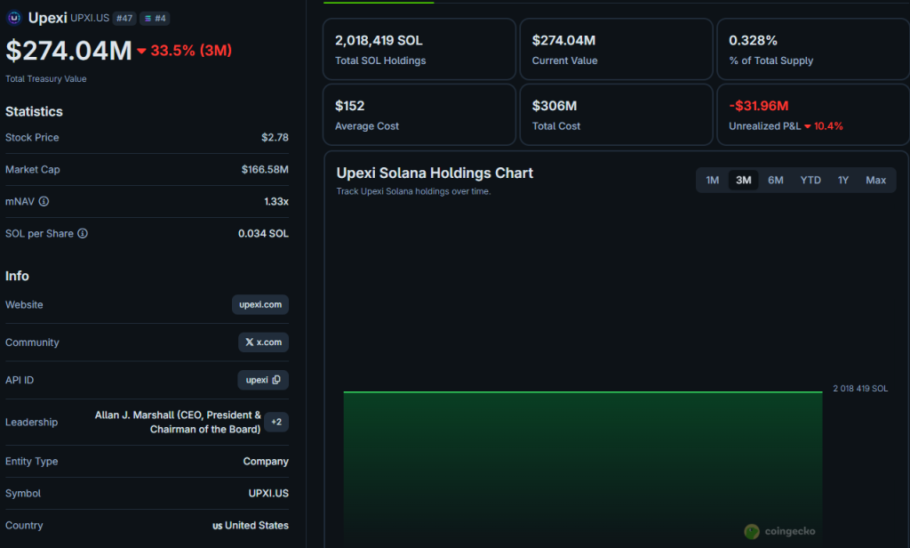 Компания Upexi также находится в минусе на $31,9 млн.