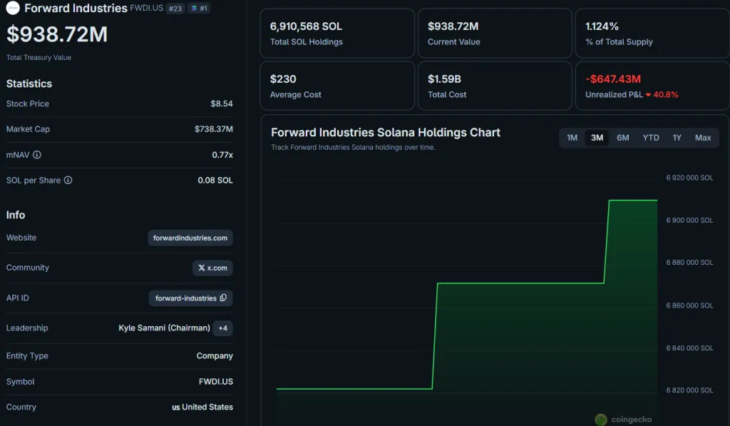 Крупнейший корпоративный держатель Forward Industries несет нереализованные убытки в размере $647,3 млн.