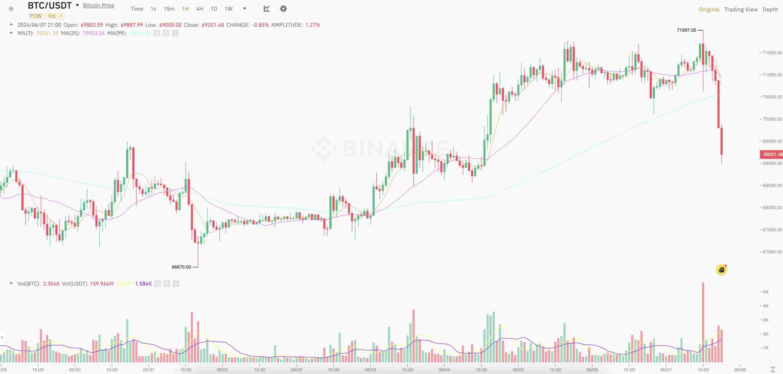 Вчера всего за час рынок криптовалют совершил разворот, при этом большинство монет значительно упали в цене. Биткоин погрузился в диапазон 69 тысяч долларов, из-за чего были ликвидированы позиции на сумму около $200 млн.