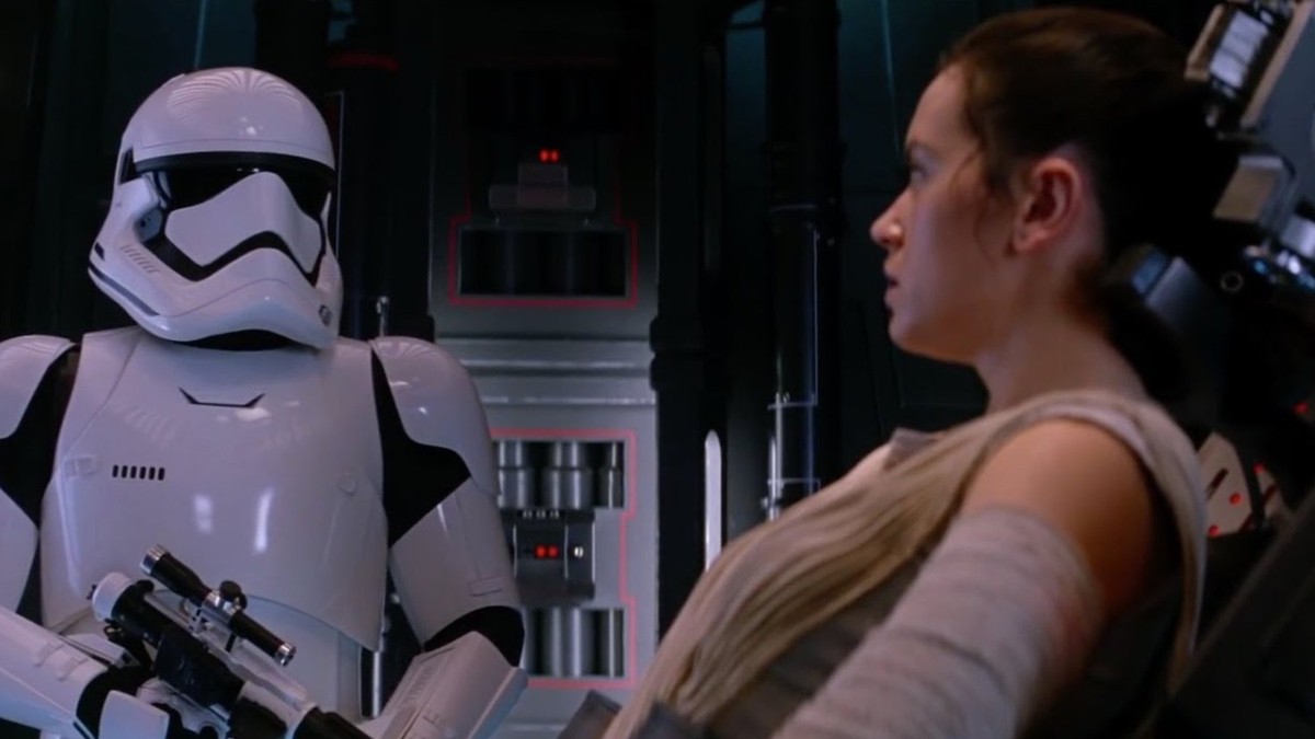Когда я писал восьмой эпизод, мы смотрели рабочие материалы, так как [Абрамс] снимал седьмой. Однажды появилась сцена с Дейзи, где она применяет джедайское внушение на штурмовика и заставляет его освободить ее.