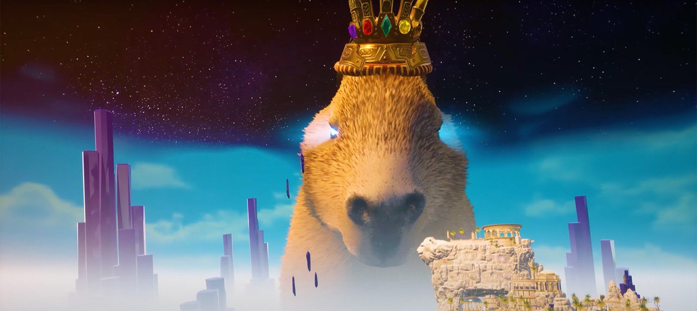 Трейлер начинается с драматического кадра, напоминающего Fortnite и MCU, где козел-протагонист падает из разрыва в пространственно-временном континууме на хаотичный остров, где его встречают другие персонажи.