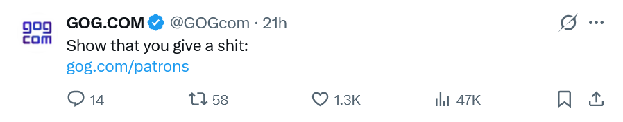 Очевидно, что у GOG есть личный финансовый интерес в том, чтобы восхвалять сохранение старых игр, поскольку в этом заключается вся ее бизнес–модель.