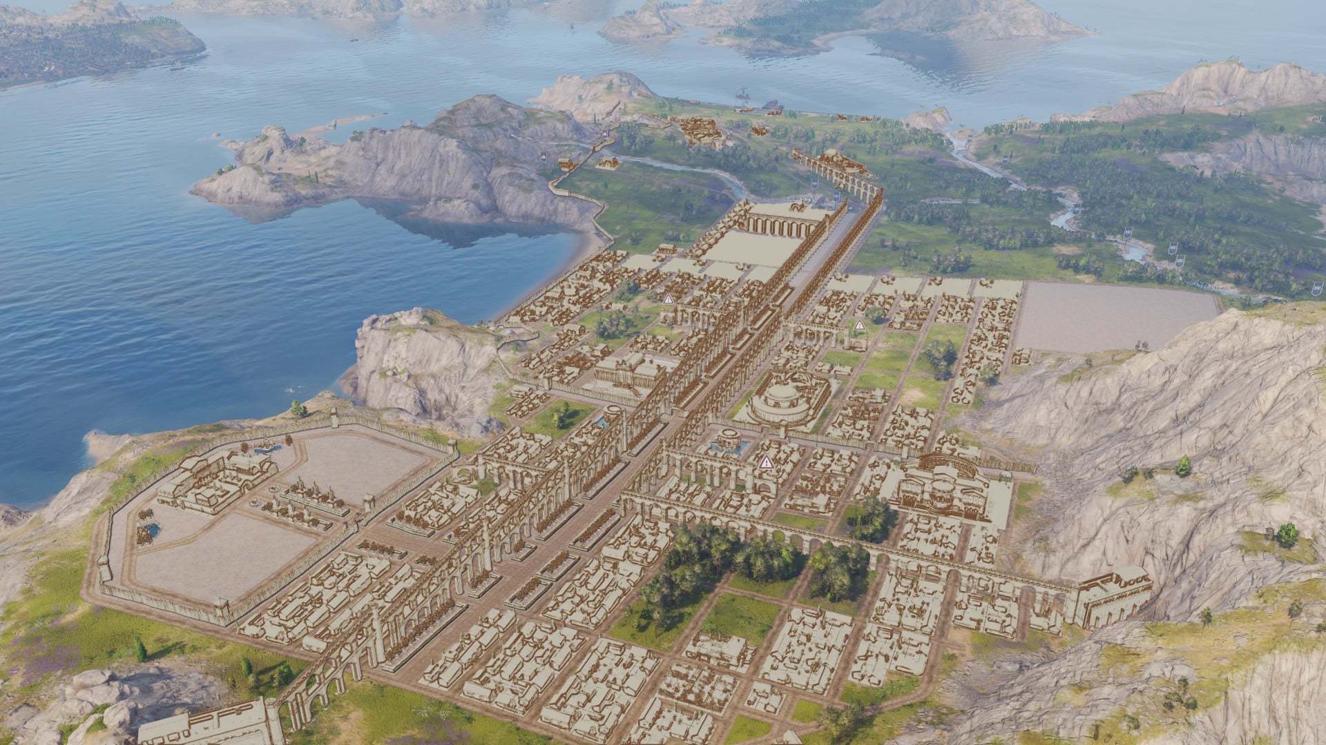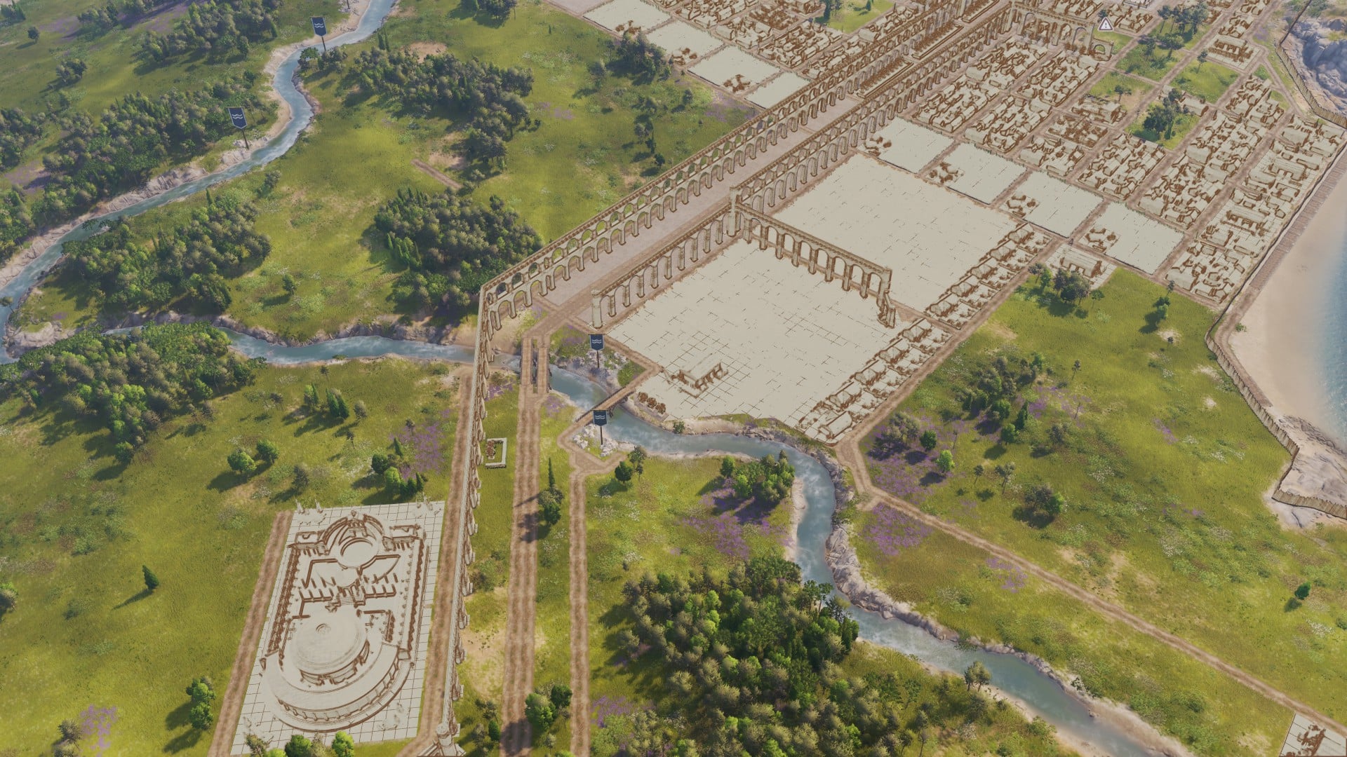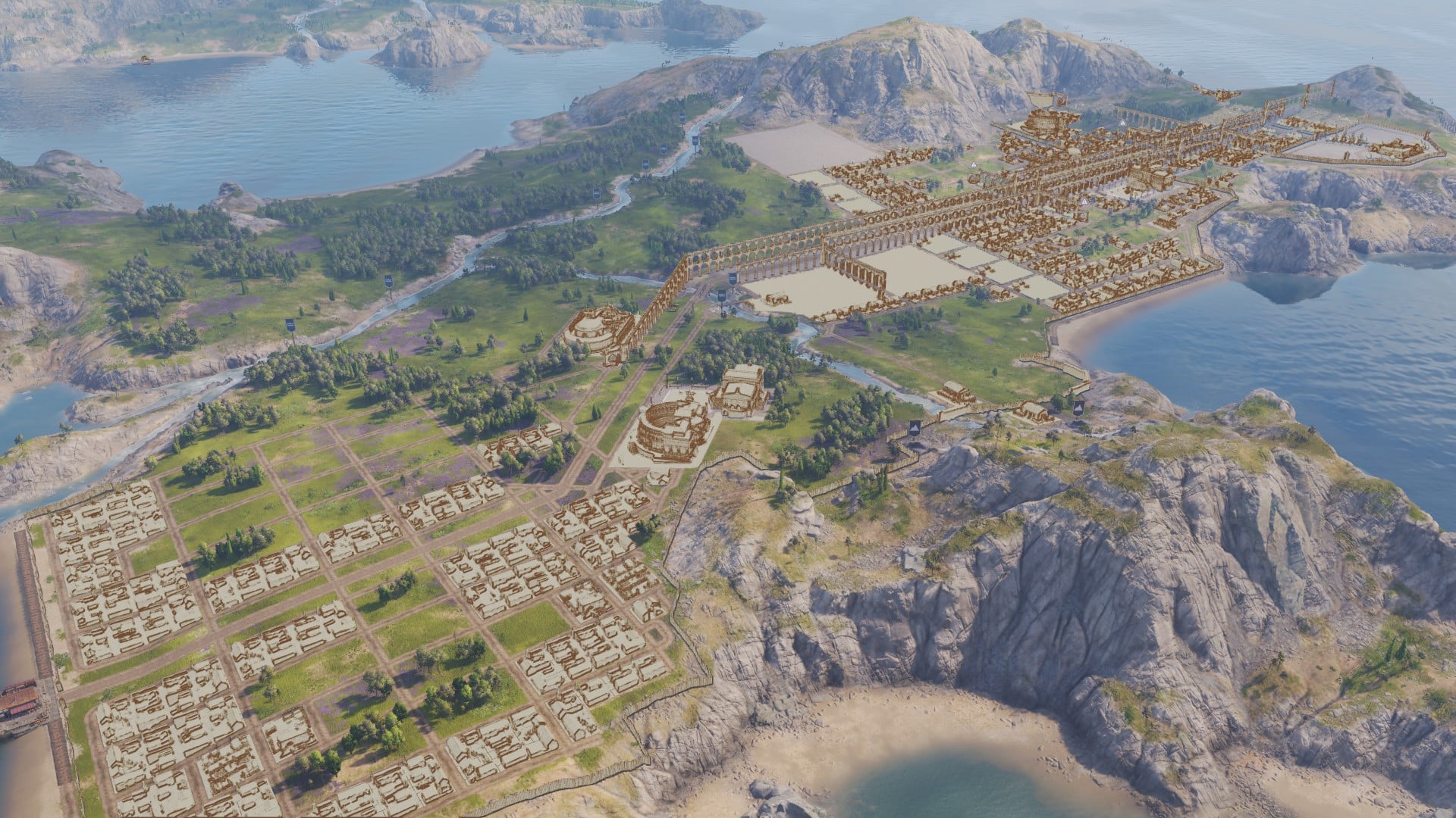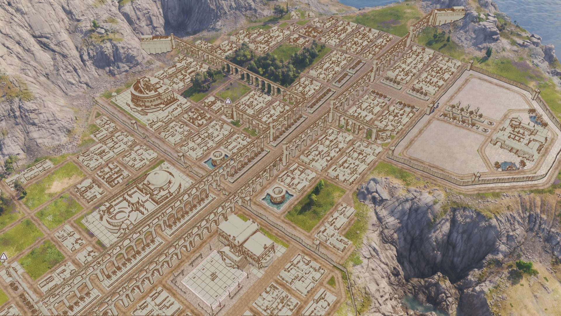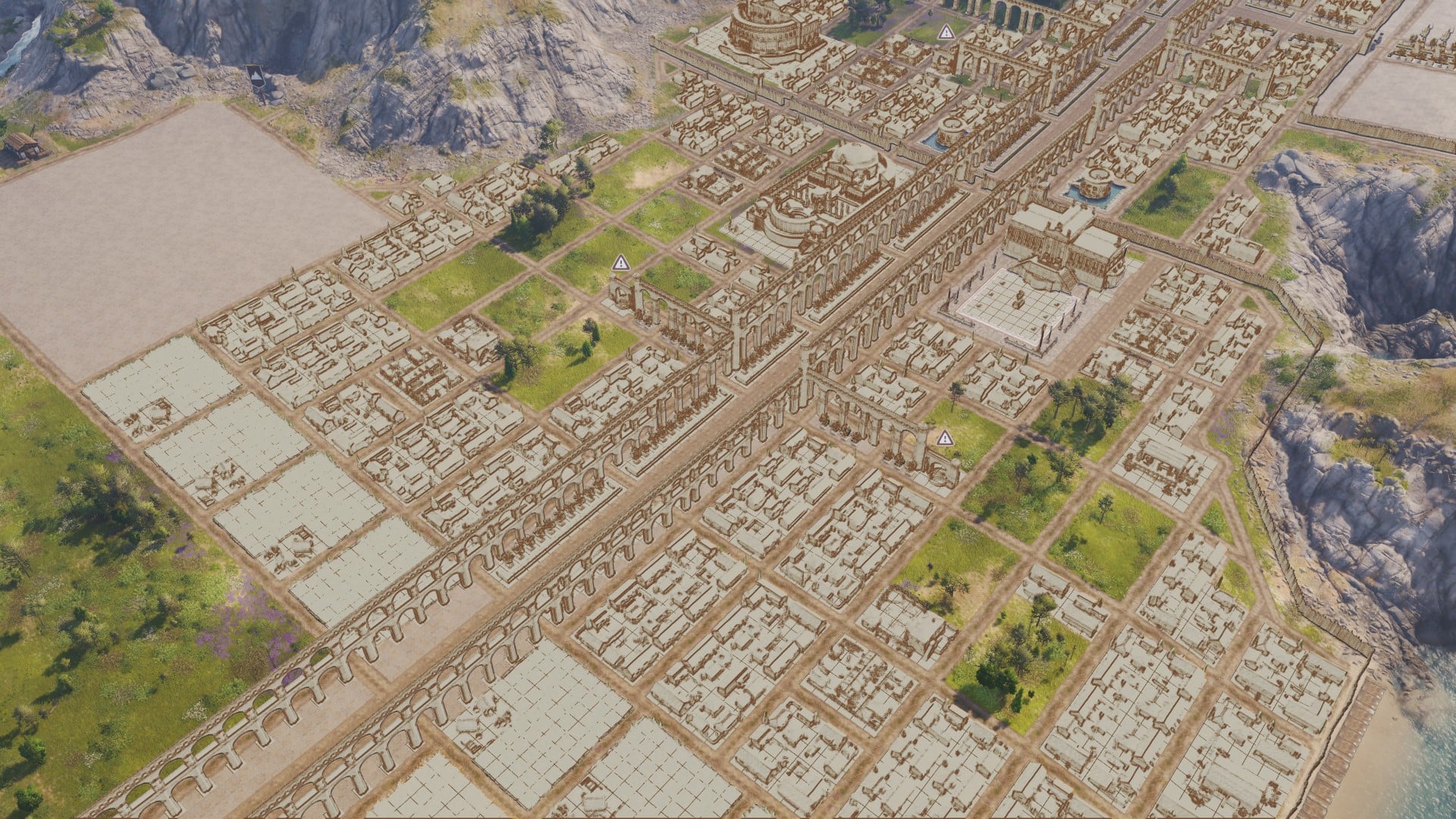Изображения показывают огромный город, размеченный в режиме блюпринтов – от жилых кварталов до общественных зданий, дорог и оборонительных стен. Каждый элемент продуман и расположен с математической точностью, создавая впечатление римского мегаполиса, который… пока существует только на бумаге.