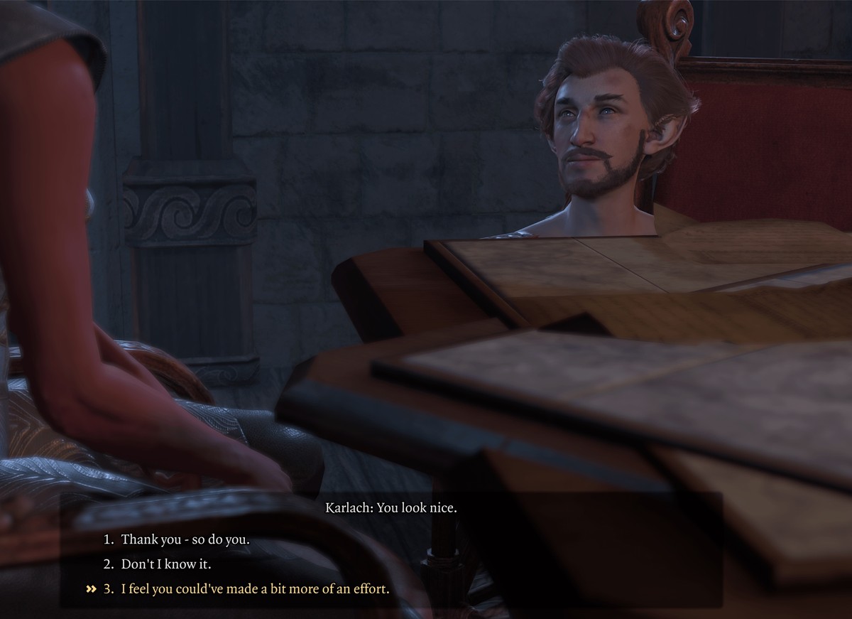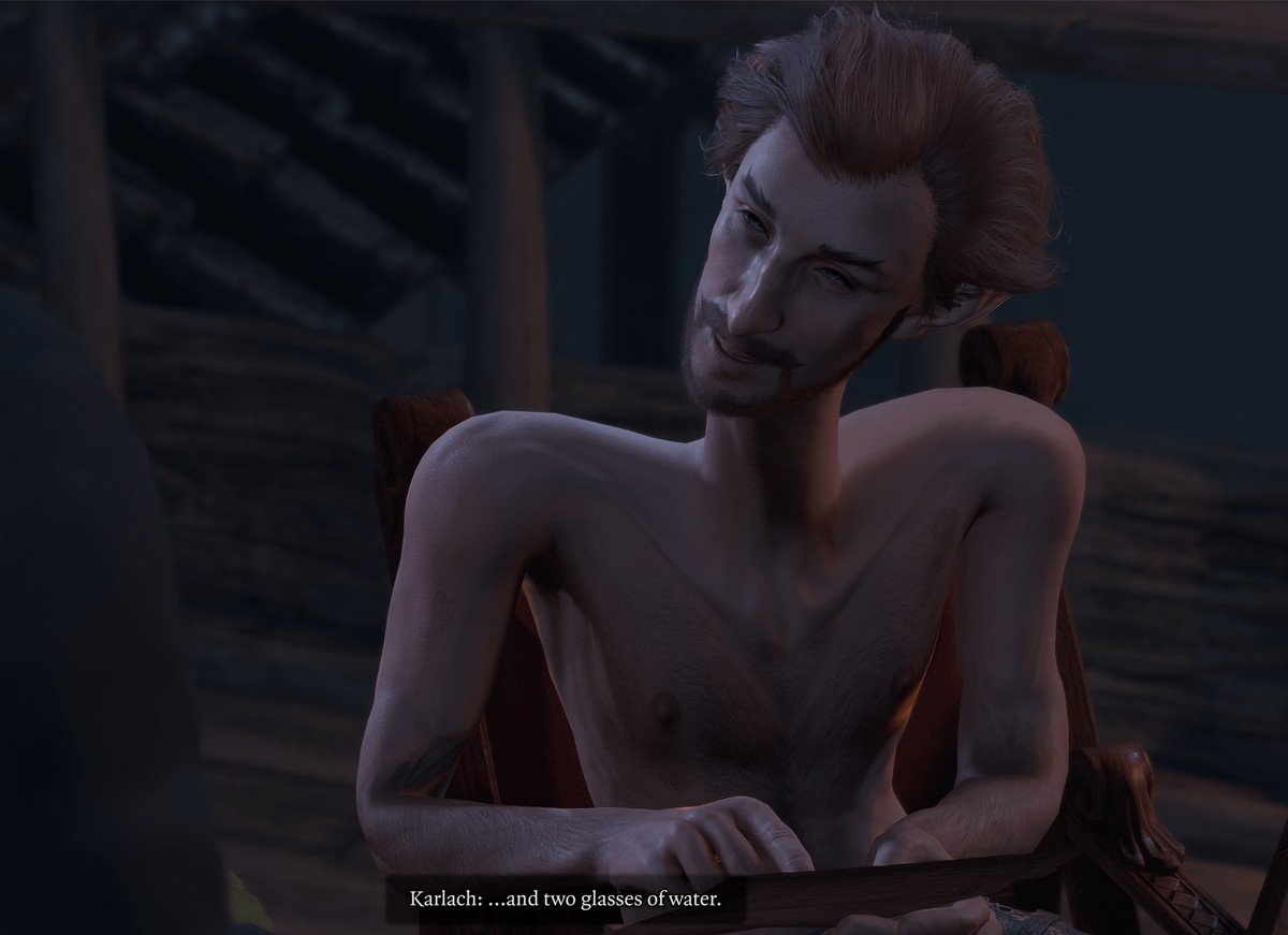 Свидание обычно включает романтический ужин, милые разговоры и горячую сцену после. Но с активной Маскировкой персонаж выглядел полностью деформированным – длинная шея и чрезмерно широкие плечи разрушили всю атмосферу. Карлах, похоже, не заметила проблемы, но для игрока погружение было испорчено.