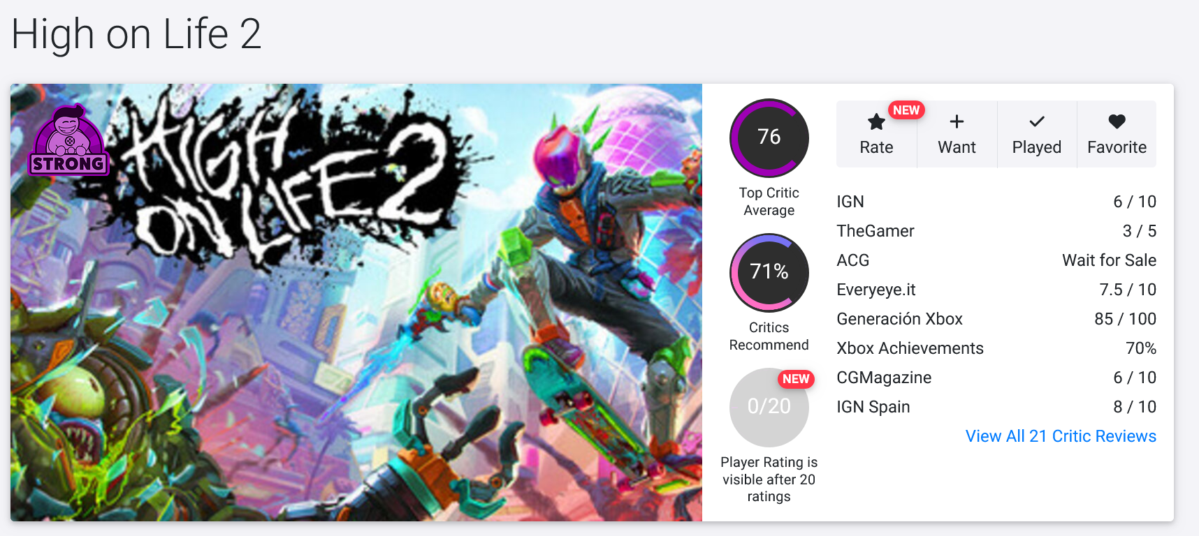 Сама же игры получила хорошие оценки от прессы – 76 баллов. Особенно хвалят добавление скейтбординга и общие улучшения качества игры после оригинала. У первой части 69 баллов на OpenCritic.