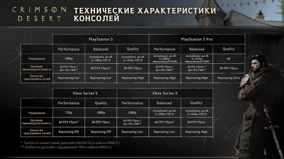 Разработчики Crimson Desert опубликовали подробные технические характеристики производительности игры на всех платформах. Главным поводом для разговоров стала версия для Xbox Series S: здесь разработчики из Pearl Abyss смогли добиться лишь 30 кадров в секунду при разрешении 1080p.