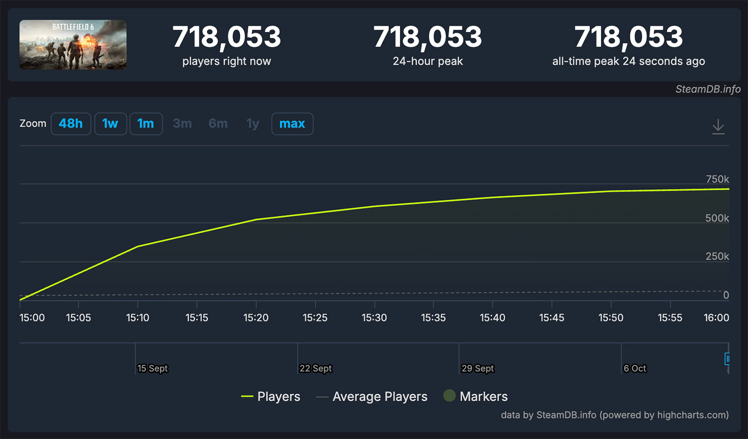 Игра уже доминирует в Steam как самая продаваемая на платформе. Один из аналитиков оценил предзаказы более чем в $100 миллионов ещё до официального выхода. На момент написания новости пик еще не достигнут, а количество одновременных игроков превышает 718 тысяч.