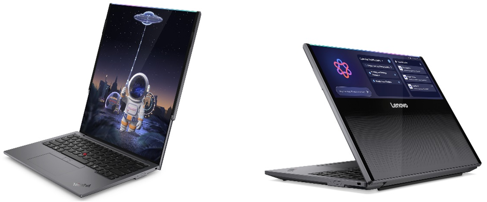 На CES 2026 Lenovo представила XD Rollable Concept – концептуальный ноутбук с гибким OLED-дисплеем, который разворачивается с 13,3 до 16 дюймов с помощью кнопки. Часть экрана заходит на крышку ноутбука и работает как дополнительный дисплей.